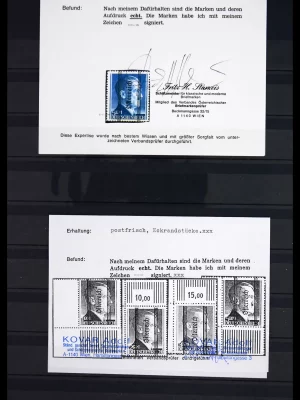 In the mainnumbers apparantly complete mint never hinged collection in very nice condition, the rare 1945 overprint sets with certificate, further the hard to get and ever so expensive new issues right up to 2020, also many crypto stamps included, housed in 6 expensive thick black Lighthouse albums. Massive catalogue value and new issue price!!