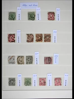 Specialised used collection with first issues extensively gathered on plates and perfs, 1893 2.5 g guilder, 1899 10 guilder, 1923 2.5 and 5 guilder, etc., and better port issues, in Davo album.